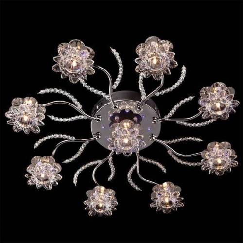 Невесомость грациозность и эфемерность – качества, которыми обладает Потолочная люстра с пультом ДУ Eurosvet 4831/9 хром/синий+красный+фиолетовый, очевидны даже при выключенном свете.