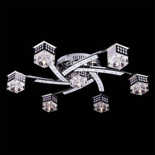 Невесомость грациозность и многогранность – качества, которыми обладает Потолочная люстра с пультом ДУ Eurosvet 4939/7 хром/синий+красный+фиолетовый, притягивают взгляд даже при отсутствии освещения.